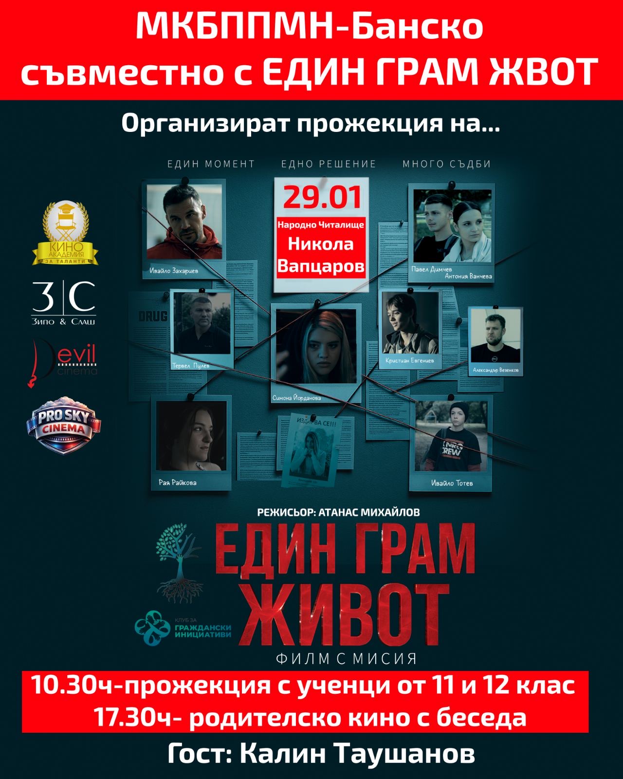 Не по-малко важна от самата прожекция е дискусията след филма със специалния гост Калин Таушанов, която дава шанс за въпроси, споделяне и търсене на реални решения. Присъствието на възрастните не е просто препоръчително – то е решаващо, защото един разговор навреме може да спаси живот.