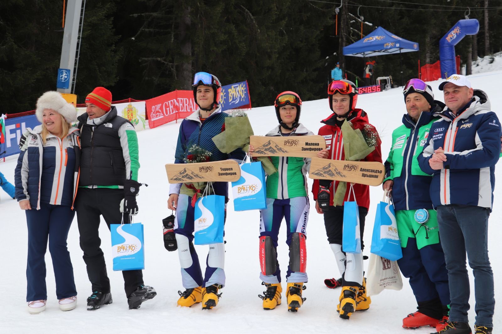 Специално спускане по пистата направиха Тервел Замфиров, Малена Замфирова и Александър Кръшняк, а на финала ги очакваха отборите от сноуборд клуб „Юлен“ и от ски клуб „Юлен“, момичета в народни носии и гайдар. Олимпийците бяха облечени с елементи от народни носии и получиха подаръци от кмета на община Банско Стойчо Баненски и от изпълнителния директор на концесионера на ски зона Банско „Юлен“ АД Мая Хрискоскова.