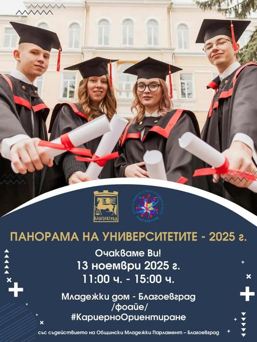 На 13 ноември (четвъртък) от 11:00 до 15:00 часа във фоайето на Младежки дом – Благоевград ще се проведе Панорама на университетите – 2025.