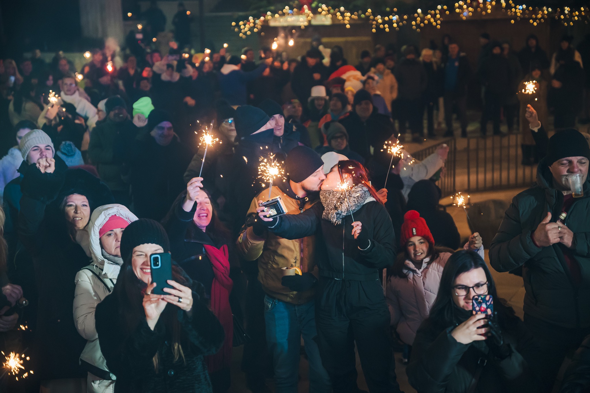 Благоевградчани изпратиха старата 2025 и посрещнаха новата 2026 година под открито небе пред голямата сцена в коледното градче, където се извиха дълги хора.