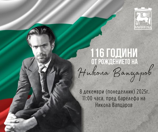 С полагане на цветя в Благоевград ще бъдат отбелязани 116 години от рождението на Никола Вапцаров.
