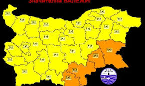 Оранжев код е в сила за областите Кърджали, Хасково, Ямбол и Бургас, където се очакват значителни количества валежи и временно интензивен дъжд. В останалата част от страната е обявен жълт код за валежи. Очаква се валежите да бъдат най-силни в южните и източните райони, а на места да са придружени от гръмотевици. Минималните температури ще са между 6 и 11 градуса, а дневните няма да надвишават 15–17 градуса.