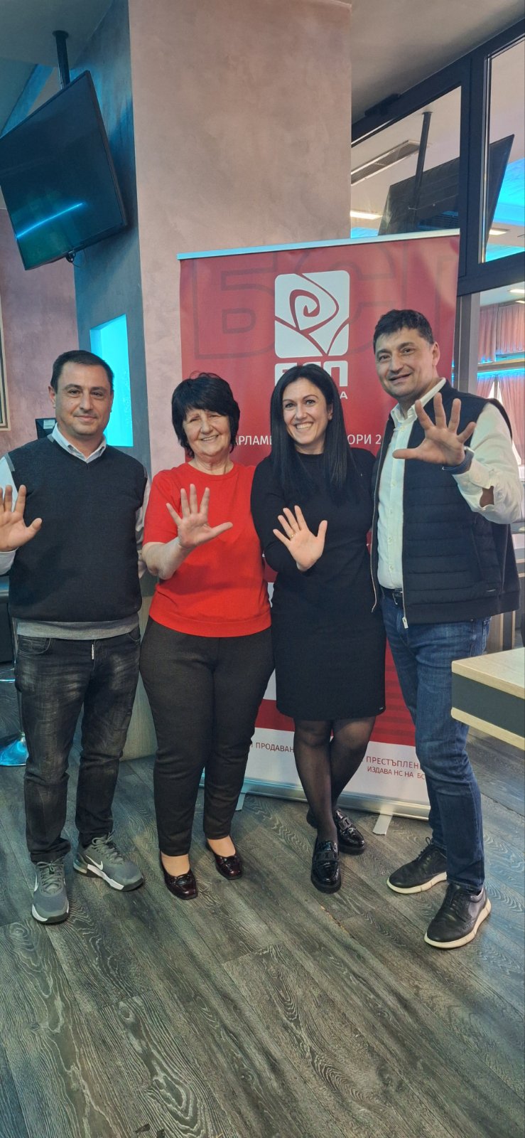 “Другите два основни стълба в програмата на БСП – Обединена левица са извършването на финансова и политическа децентрализация, чрез които да се постигне реална власт за общините и хората. И едно от най-важните неща – да има мир и национален суверенитет“, категорична бе Гергана Орманлиева.