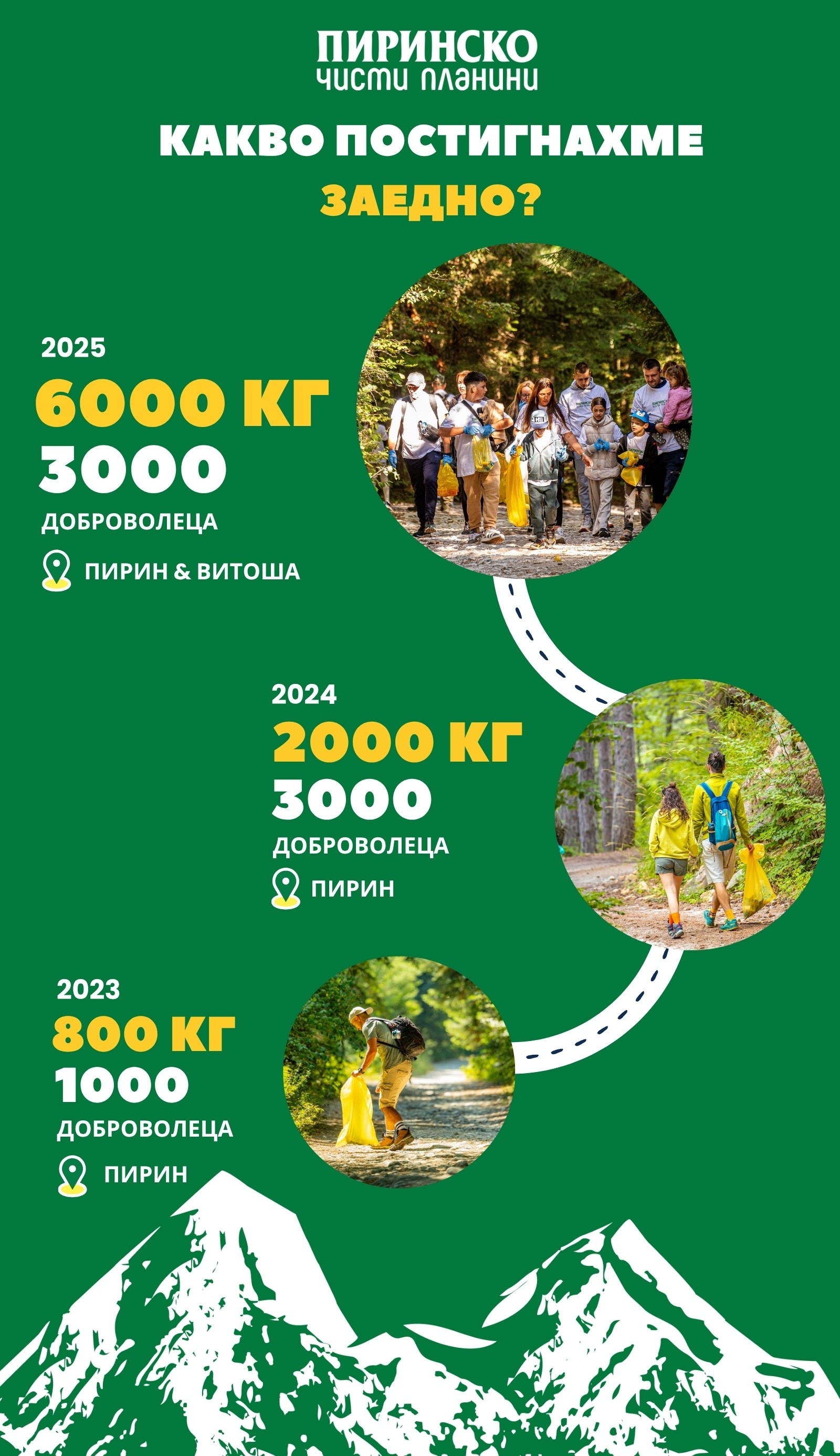 За трета поредна година „Пиринско Чисти планини“ 2025 обедини хиляди доброволци около каузата за по-чиста природа, а кампанията събра рекордните 6 тона отпадъци от планината.
