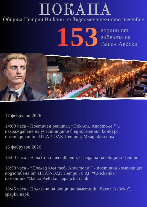 Община Петрич Ви кани да се присъедините към факелното шествие и заедно да покажем, че светлината на едно величаво дело остава ярка над България! ✨