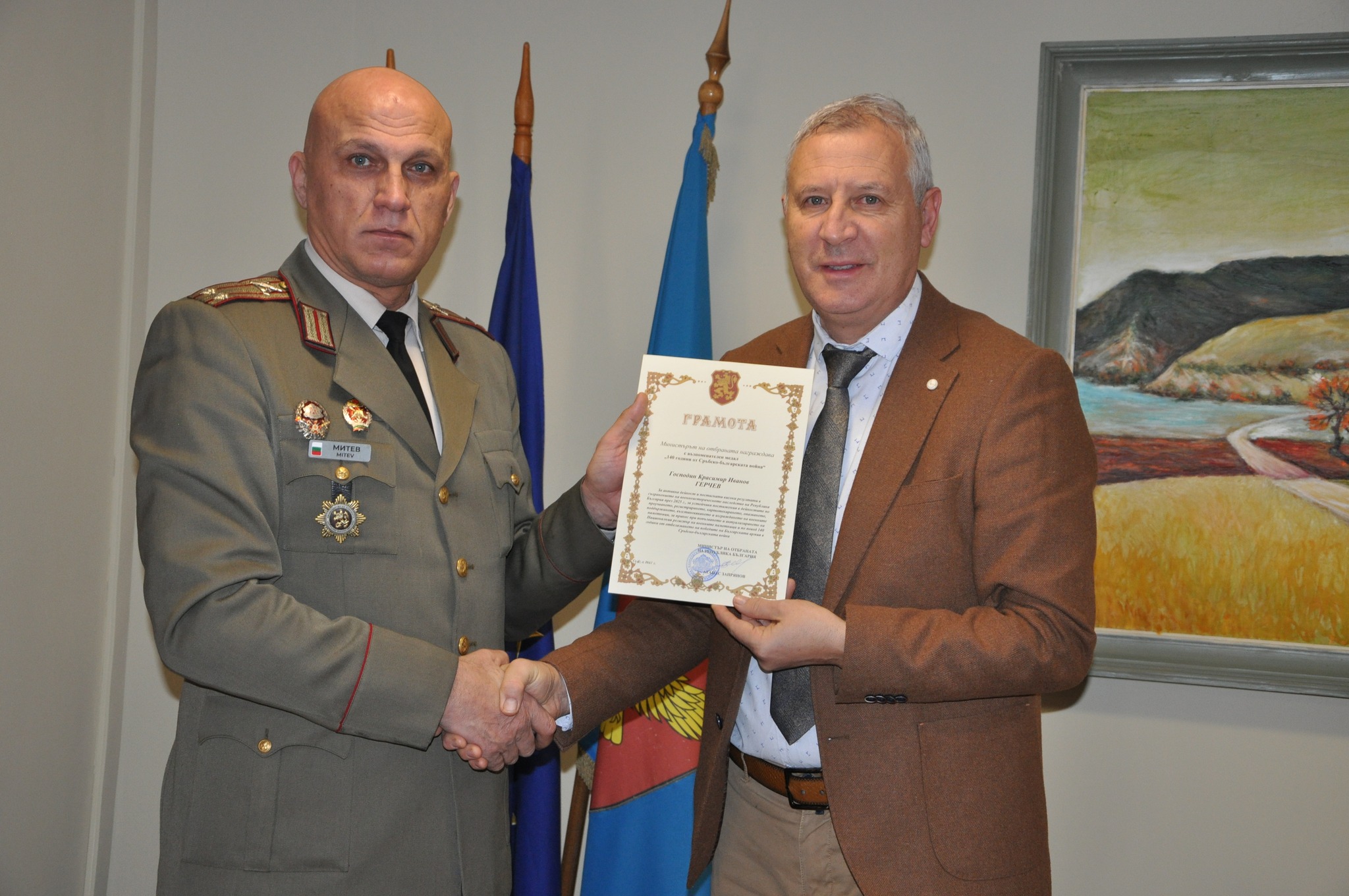 Днес, 19 януари, кметът на Община Разлог Красимир Герчев бе удостоен с Грамота и възпоменателен медал „140 години от Сръбско-българската война“ от министъра на отбраната Атанас Запрянов.