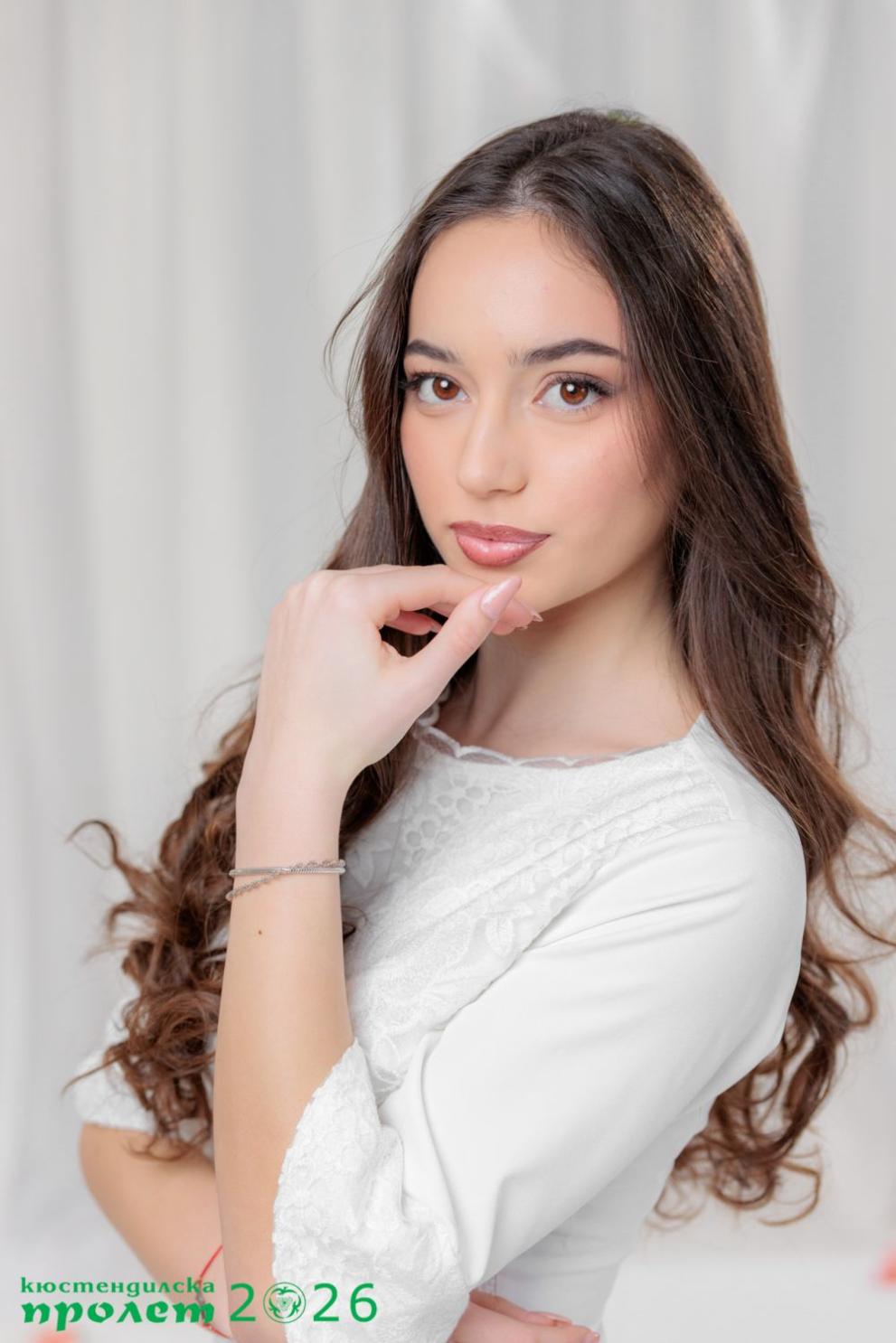 Тя е на 17 години и е възпитаничка на ЕГ „Д-р Петър Берон“. Тя се определя като нежна по сърце и целеустремена в мечтите си.