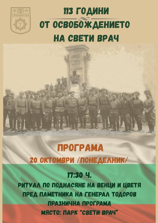 На 20 октомври почитаме 113 години от Освобождението на Свети Врач – денят, в който отряд на Седма Рилска дивизия влиза в града и поставя началото на новата му история.