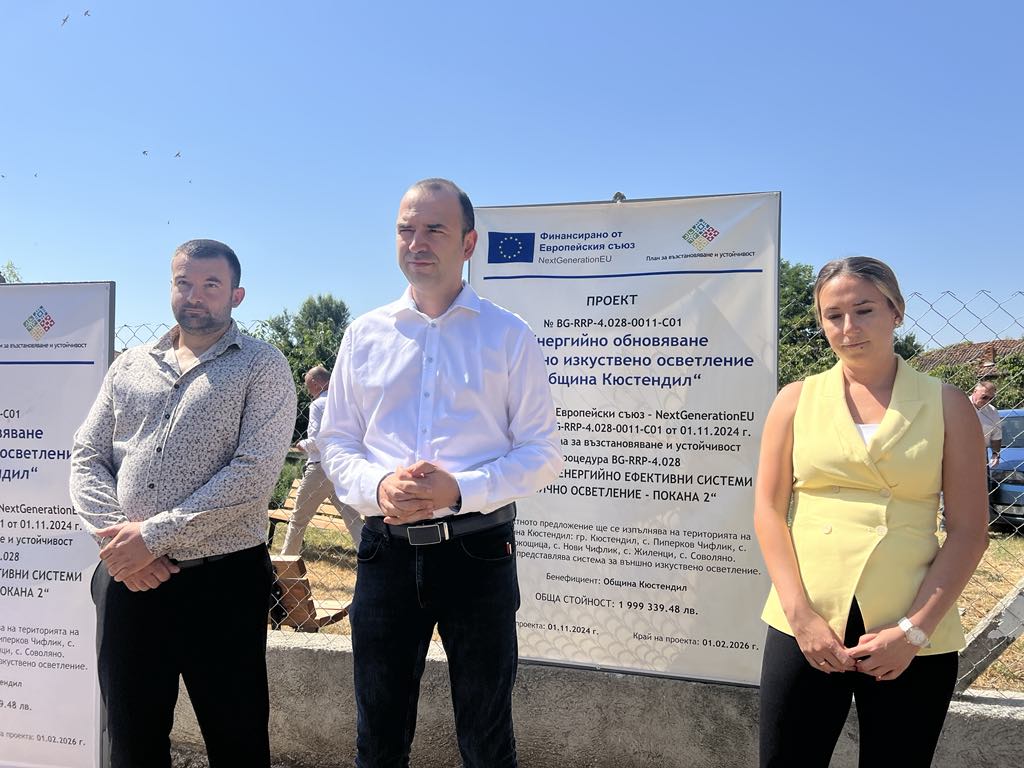 Кметът на Община Кюстендил инж. Огнян Атанасов анонсира проекта за подмяна на уличното осветление, който се реализира  в момента в град Кюстендил и пет села в общината – Нови чифлик, Пиперков чифлик, Жиленци,  Соволяно и Слокощица.  Той представи  дейностите по проекта на пресконференция  в село Нов чифлик, което е първото с напълно подменено енергоспестяващо осветление и табла за управление.