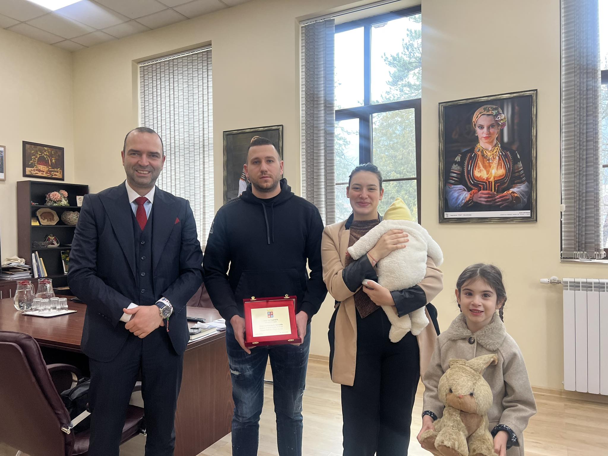Кметът на Община Кюстендил инж. Огнян Атанасов награди „Бебе на годината“ на гр. Кюстендил – малката Никол Александрова Василева, родена на 03.01.2026 г. в 17:15 ч.