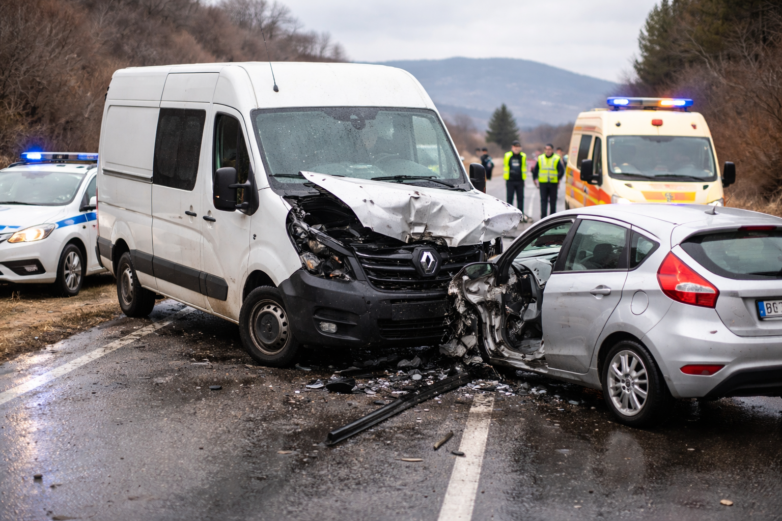 На 18.02.2026 г. около 14:40 часа на пътя между гр. Хаджидимово и с. Блатска, товарен автомобил „Рено Мастер“, управляван от 24-годишен мъж от с. Гърмен, движейки се с несъобразена с пътните условия скорост, за да избегне удар в паркирано моторно превозно средство в дясно на пътното платно е навлязъл в лентата за насрещно движение и се е ударил в лек автомобил „Форд Фиеста“, управляван от 57-годишен мъж от с. Беслен. При инцидента са пострадали: водачът на лекия автомобил „Форд Фиеста“, който е с фрактура на гръдна кост и фрактура на ребра, 17-годишна пътничка в товарния автомобил „Рено Мастер“, която е с контузия на главата, 2-годишно дете, което е с контузия на главата и 9-месечно бебе, което е с фрактура на бедрена кост и счупени ребра, също пътуващи в товарния автомобил. На 24-годишния водач са направени проби с технически средства за употреба на алкохол и наркотици, които са отрицателни. По случая е образувано досъдебно производство.