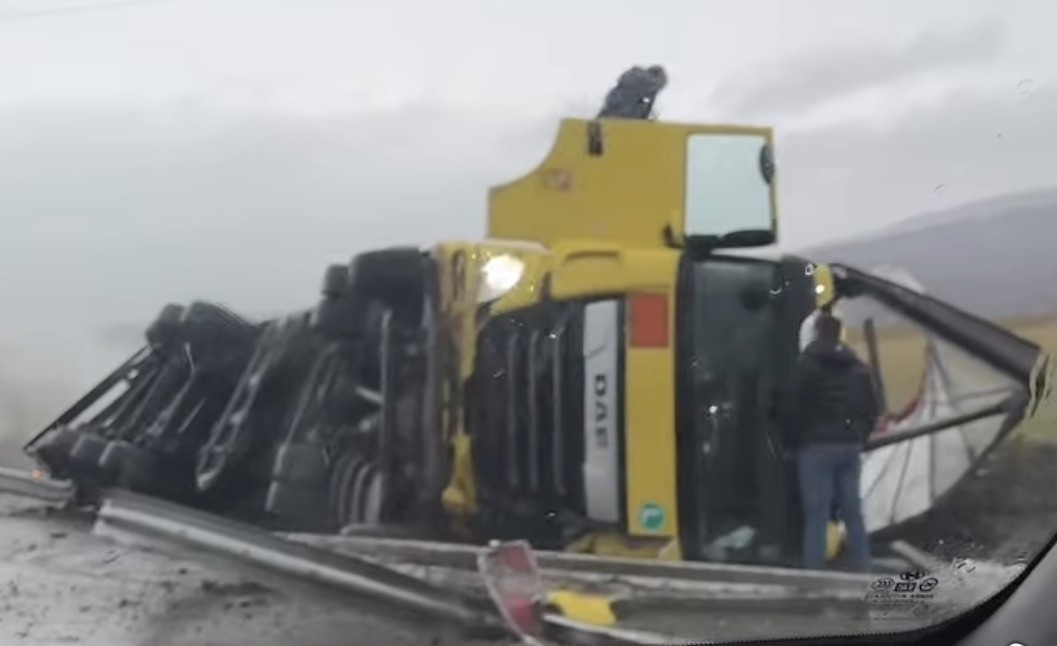 За обърнат ТИР на автомагистрала „Хемус“ сигнализираха потребители в социалните мрежи.