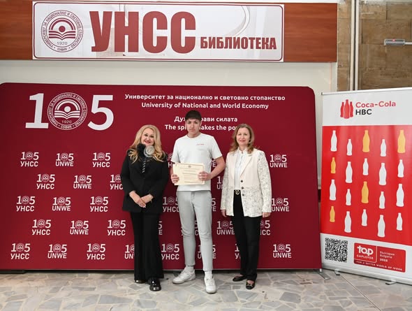 С особена гордост съобщаваме, че ученикът Стилиан Станимиров Марков – XII г клас, спечели престижното второ място в Националното състезание по икономика и управление, който участва и в официалната церемония по награждаването на 17.03.2026 г. в библиотеката на УНСС.