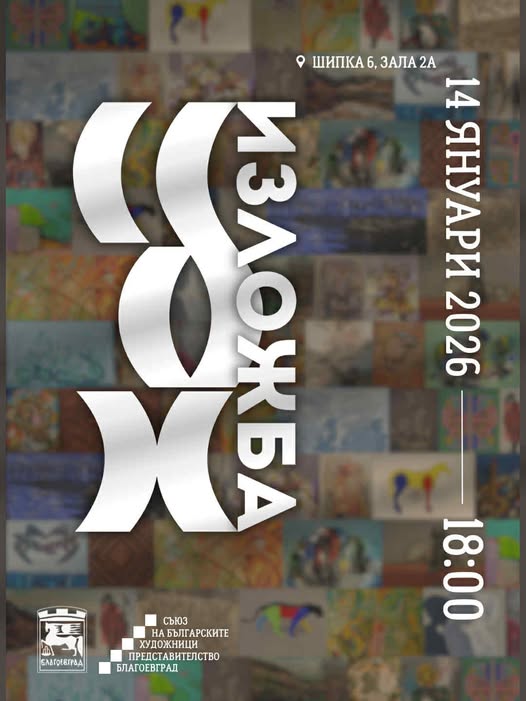 24 автори представят актуалните художествени търсения на творци от Благоевград и региона в изложба на Съюза на българските художници – Представителство Благоевград, която ще бъде открита на 14 януари от 18:00 ч. в зала 2А на СБХ, ул. „Шипка“ №6, София.