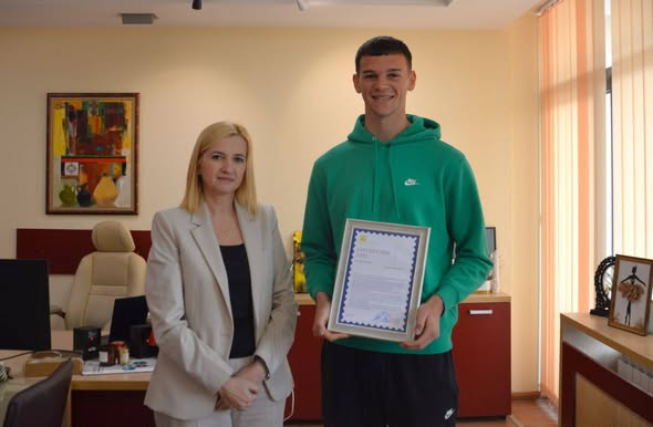 Заместник-кметът Боряна Шалявска награди дванадесетокласника Тодор Пасков от Благоевградска професионална гимназия „Ичко Бойчев“ за проявена честност и отговорност.