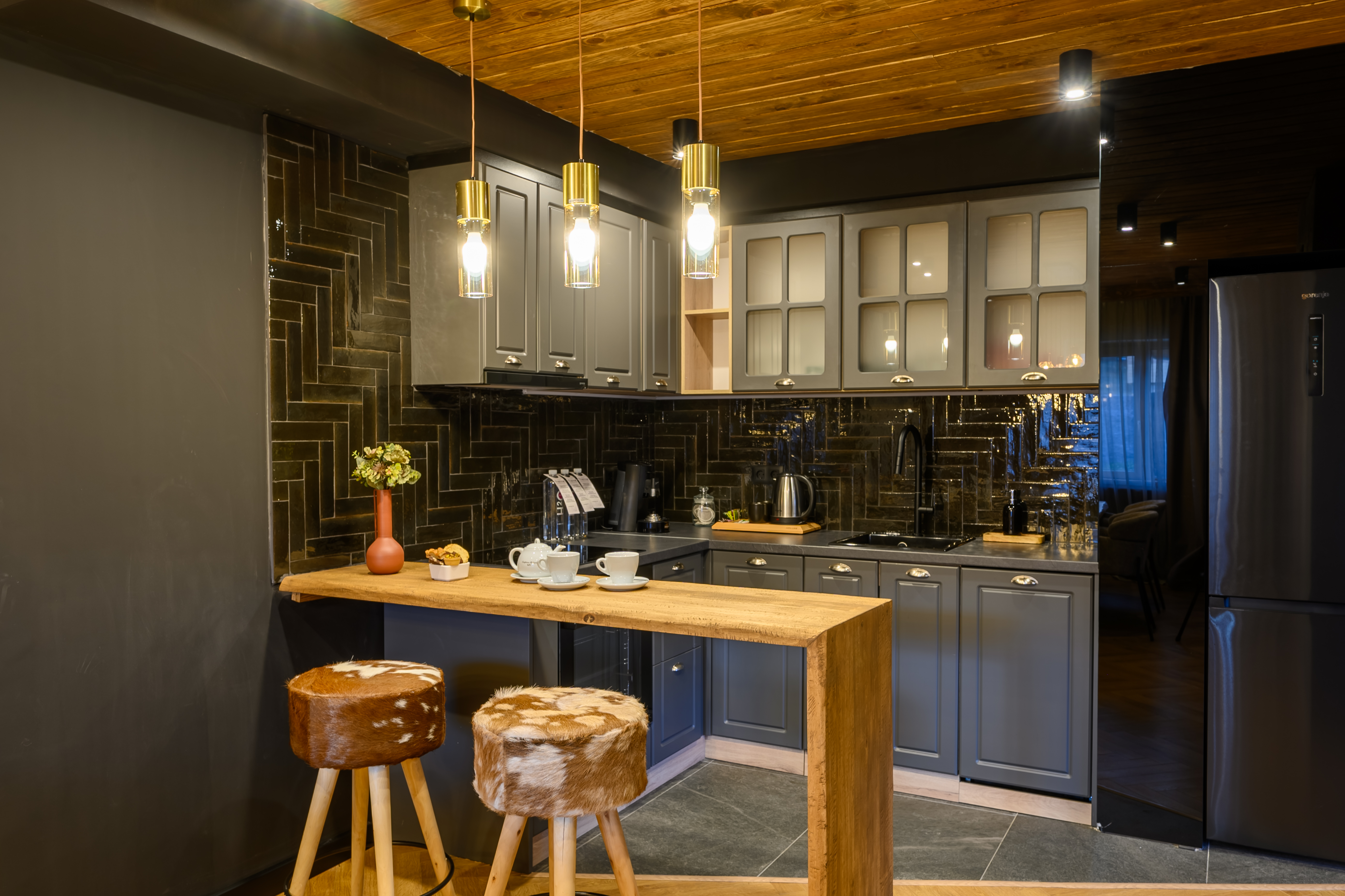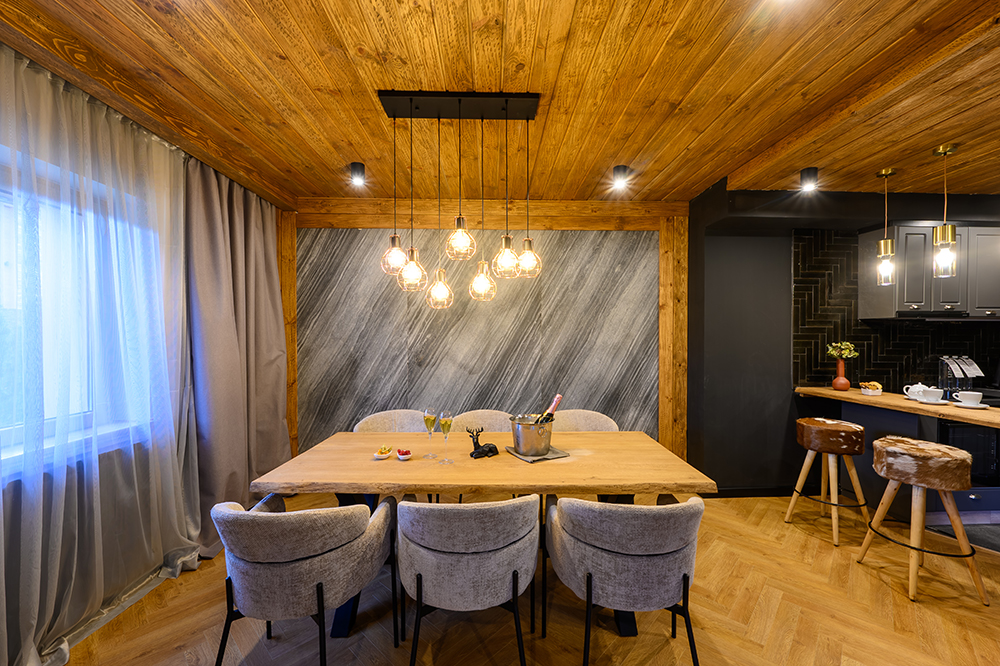 Интериорът е просторен, с внимание към детайла и усещане за уют и уединение. Тук се съчетават удобството на самостоятелен дом, лично пространство и пълноценно СПА изживяване, допълнени от тиха атмосфера и красива природна среда — всичко необходимо за истинска почивка.